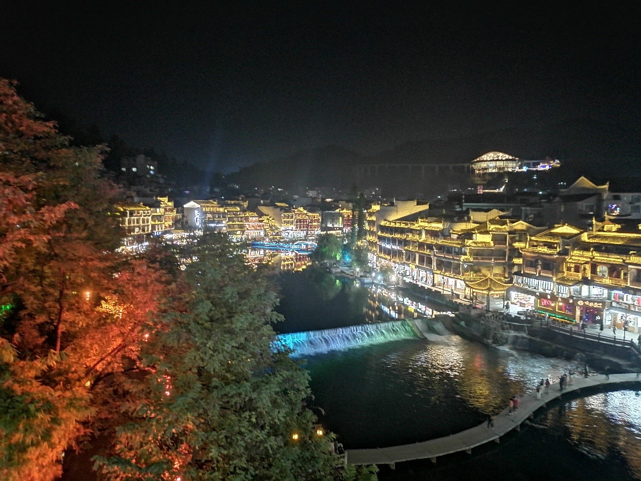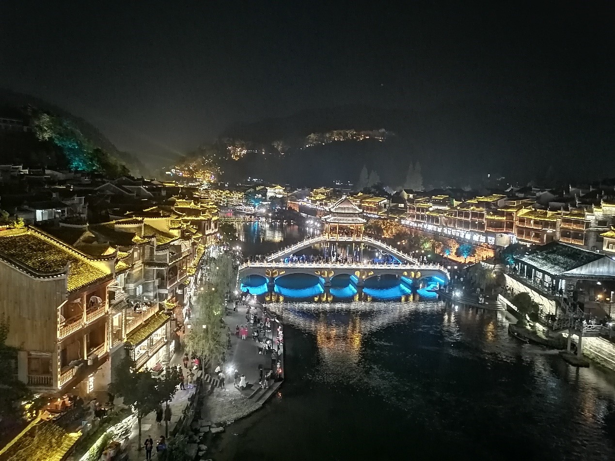 在古城客栈大家办好入住,一起吃完晚餐后,就开始了三五成群的结伴游玩。大家沿着沱江的江边漫步,欣赏古城的夜景。