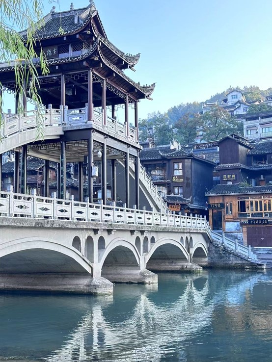 游览完芙蓉镇后,大家坐车前往本次旅程的终点站-湘西凤凰古城。凤凰古城始建于唐代,距今已有1300多年的历史。这座城市以其独特的建筑风格和丰富的文化内涵而闻名于世。凤凰古城总面积约10平方公里,依山傍水,是一个充满神秘色彩的地方。