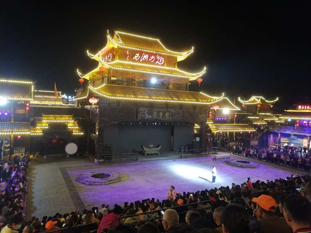 傍晚入住张家界武陵源的客栈,吃过晚餐后大家一起观看大型迎宾演艺经典-魅力湘西。魅力湘西演出是湘西文化的缩影,是一场来张家界必看的民俗表演。