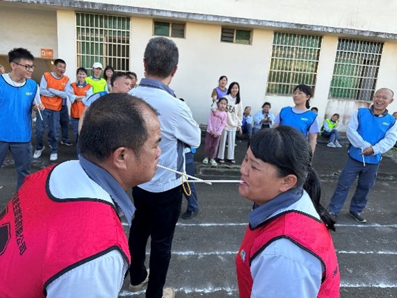 第一个游戏为“快乐传递”,大家嘴里咬着吸管,小心翼翼的传递着橡皮筋,边上的同事们在想尽法子的逗着比赛中的人,可以看到好多同事被逗得压不下去的嘴角,止不住的笑意。