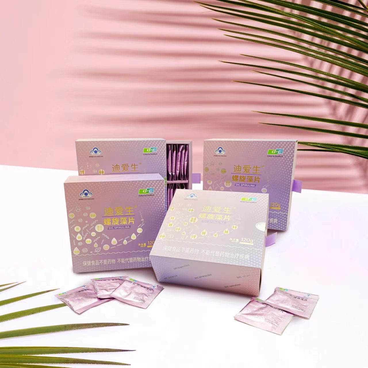 迪爱生螺旋藻片,采用独立的铝箔小袋包装,密闭性优良。既方便携带,便于保存,又有效地延长产品外包装开启后的保质期限。